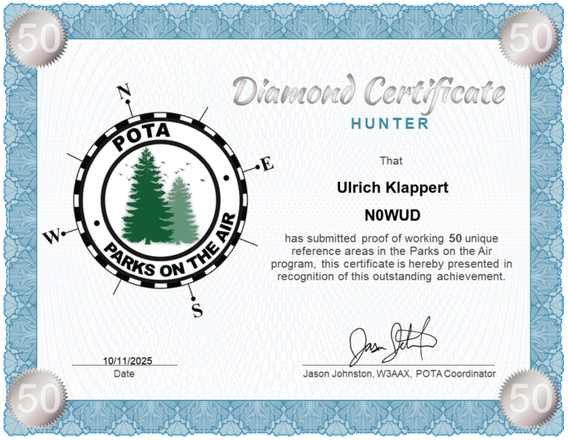 Nachdem ich die höchste Lizenzklasse erreicht hatte, wollte ich natürlich auch mit meinem amerikanischen Rufzeichen "on air" gehen. Es gibt mittlerweile die Möglichkeit von meinem QTH in Deutschland aus mit einer amerikanischen Remotestation QRV zu sein. So konnte ich mit meinem Rufzeichen NØWUD am POTA-Programm teilnehmen.